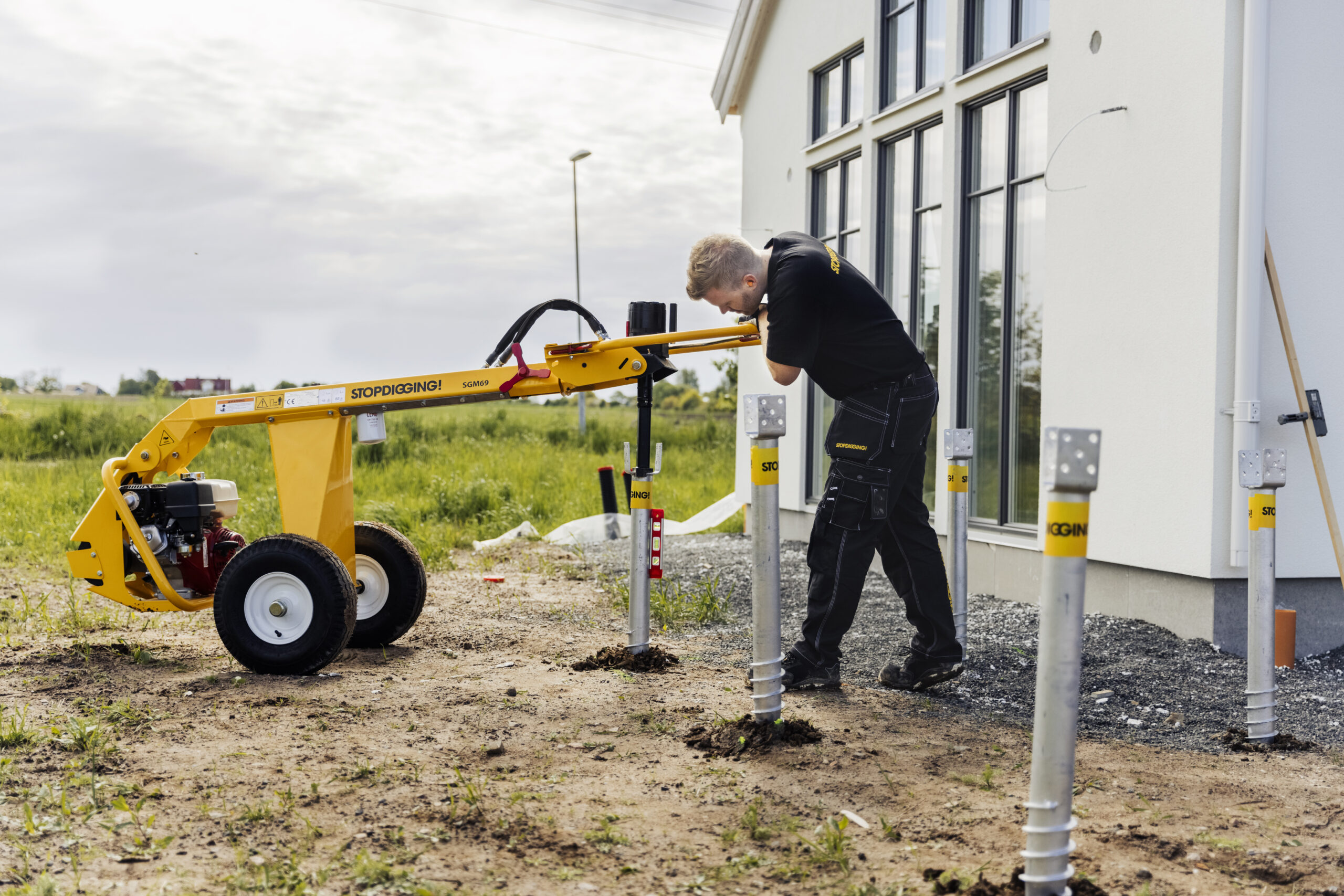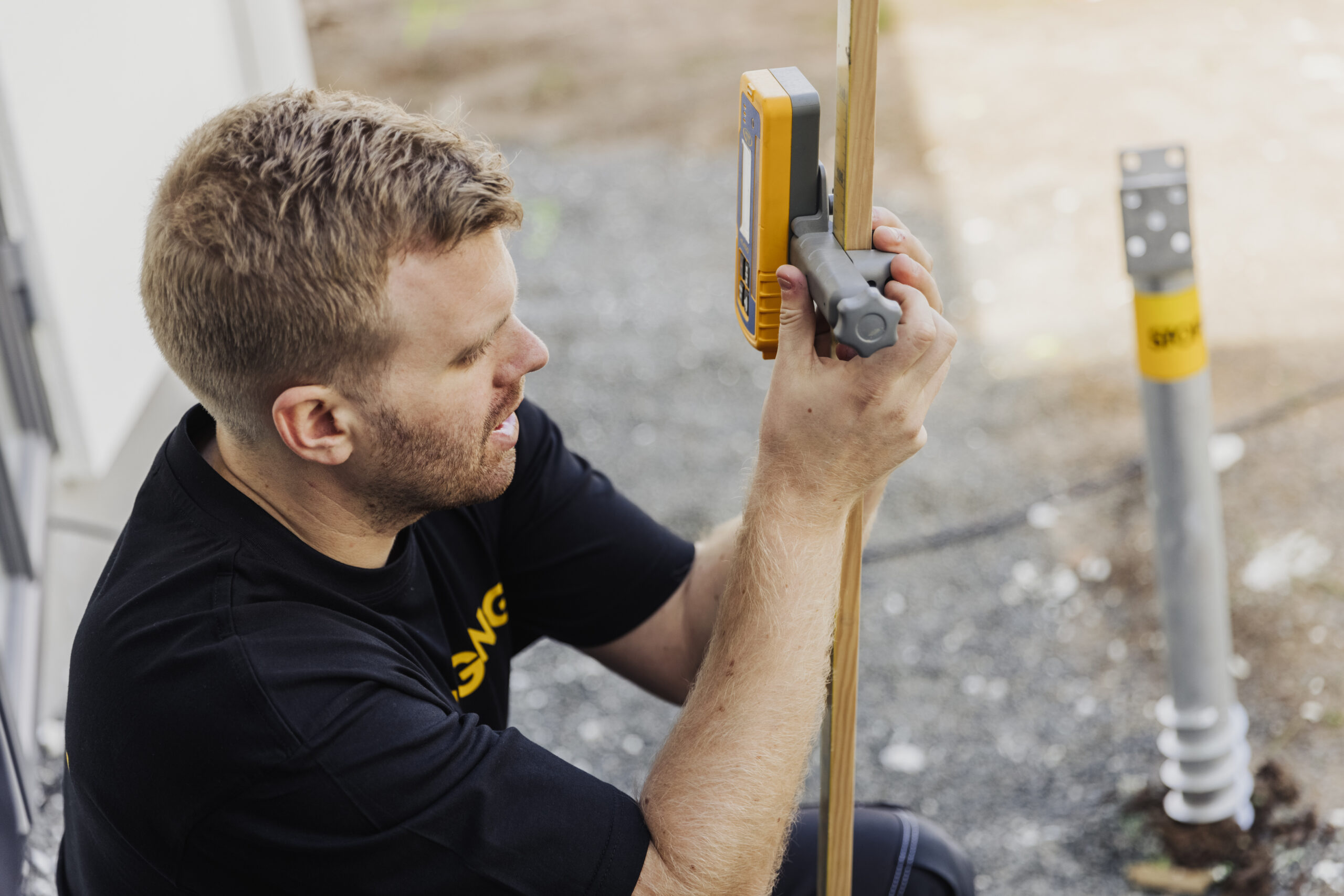 Wanneer de voorbereiding is afgerond, installeren onze gecertificeerde monteurs de grondschoeven snel en nauwkeurig. Geen graafwerk, geen beton, geen wachttijd. Binnen enkele uren heb je een stabiele en duurzame fundering.
